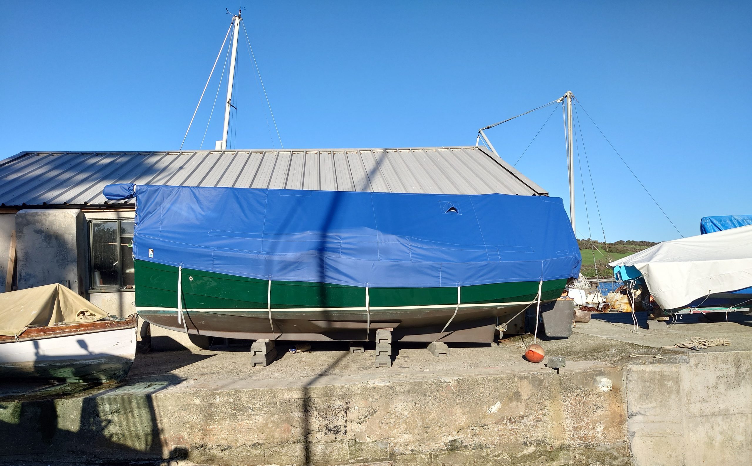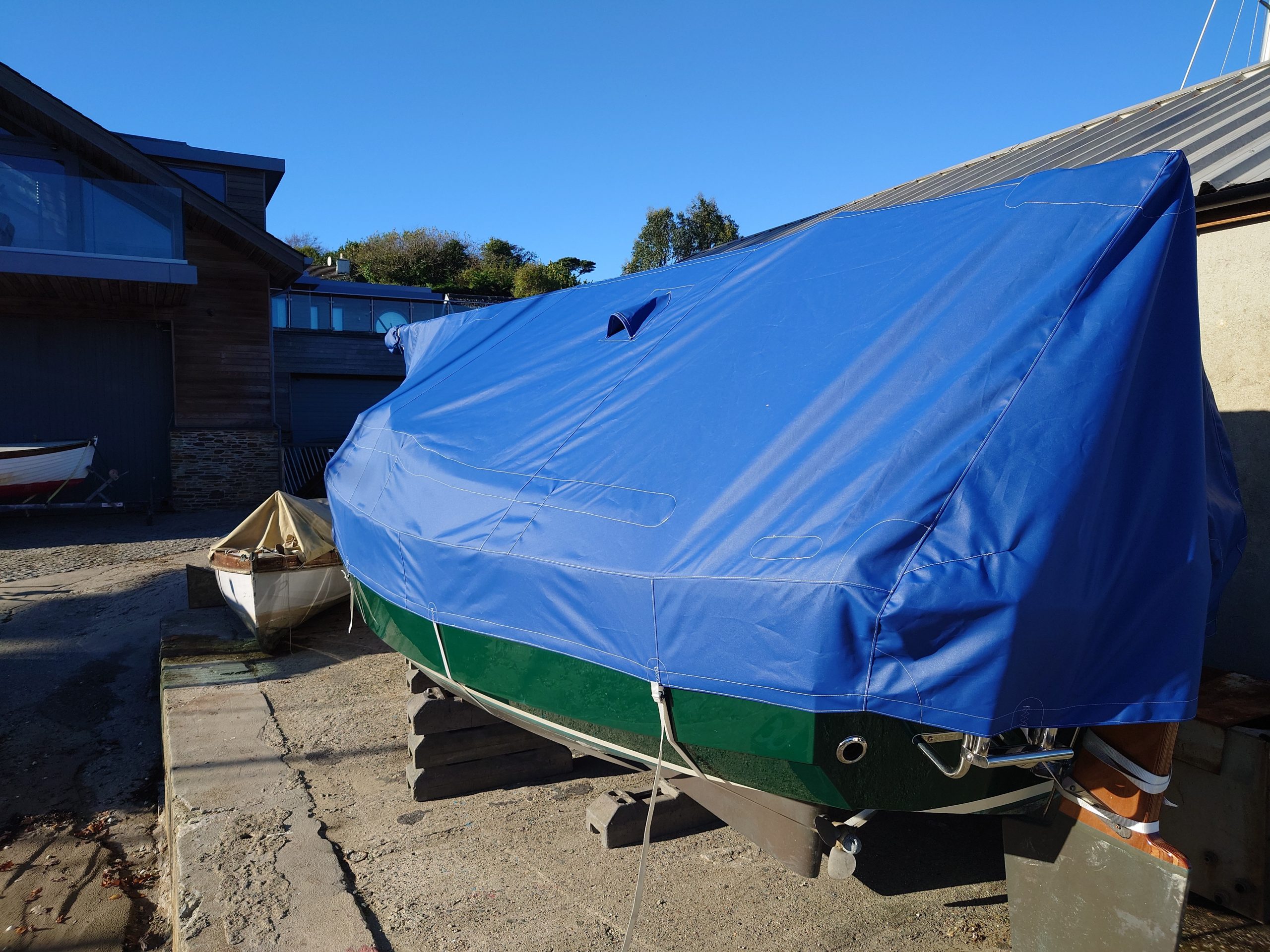 Our Shrimper laying up covers are built to stand the harshest of winter layups. We use Top Gun as standard as it is proven to be a more durable upgrade to the traditional polycotton or PVC. They use the mast as a strongback and are reinforced at chafe points with extra layers. Lacing forward and webbing straps aft, port and starboard with bar buckles ensure it will be a snug fit. Cloth vents (not hard plastic) allow the boat to breathe, we also add a boot to cover the furler at the for’ard end.